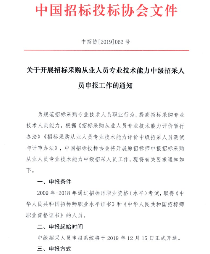 關于開展招標采購從業人員專業技術能力中級招采人員申報工作的通知