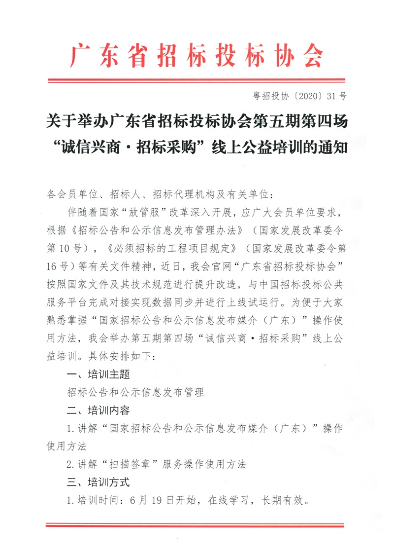 關于舉辦第五期第四場“誠信興商?招標采購”線上公益培訓的通知