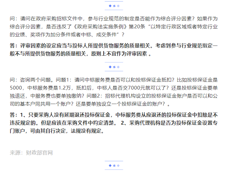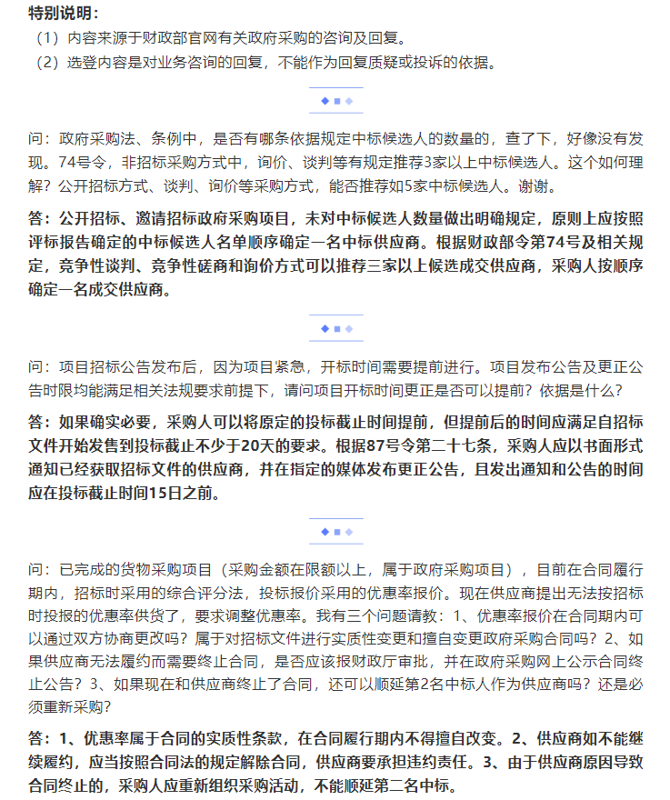財(cái)政部政府采購咨詢留言回復(fù)選登