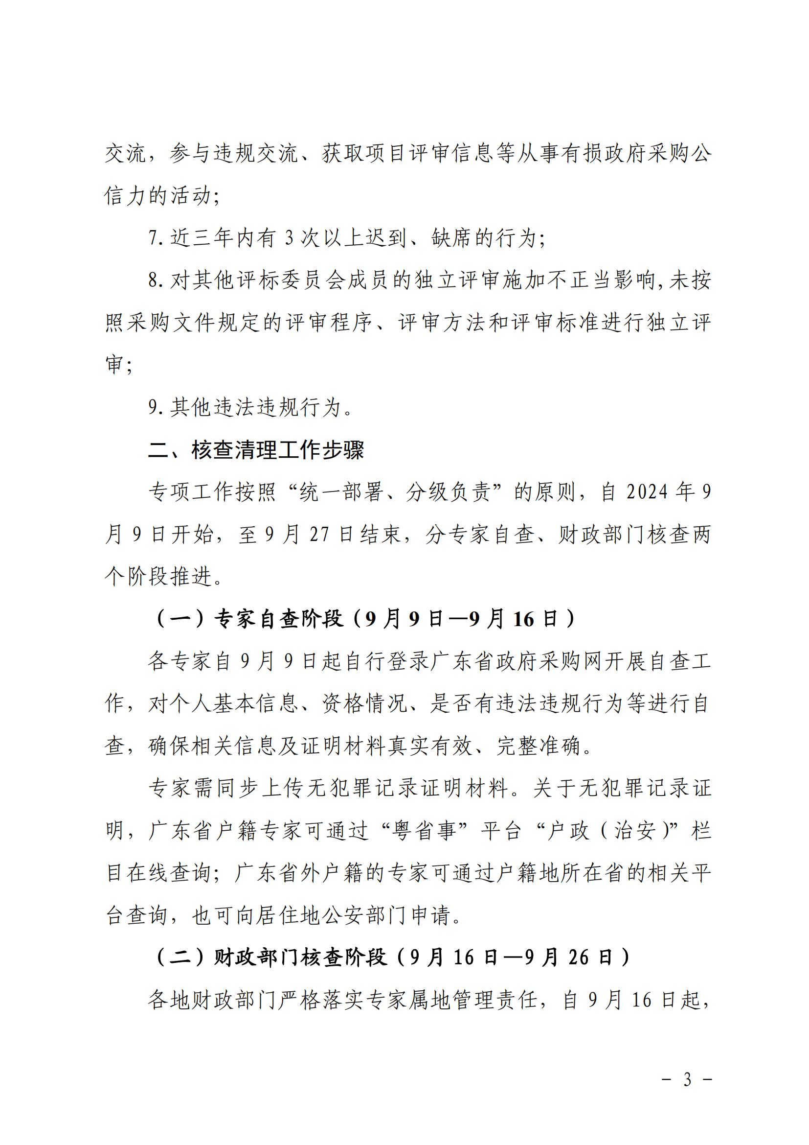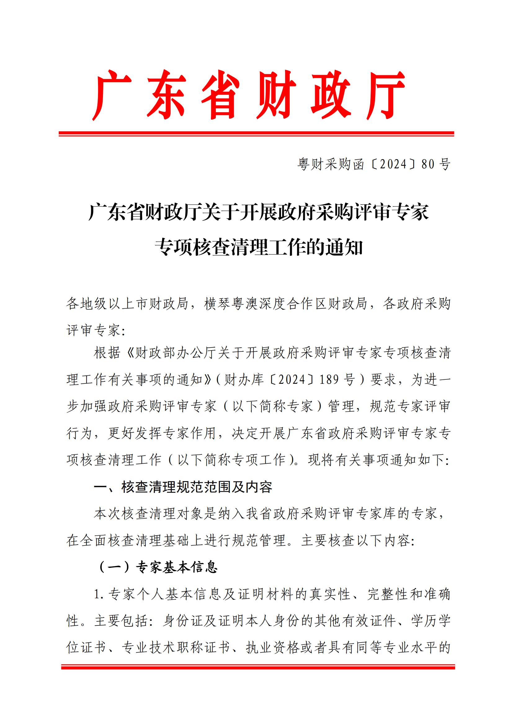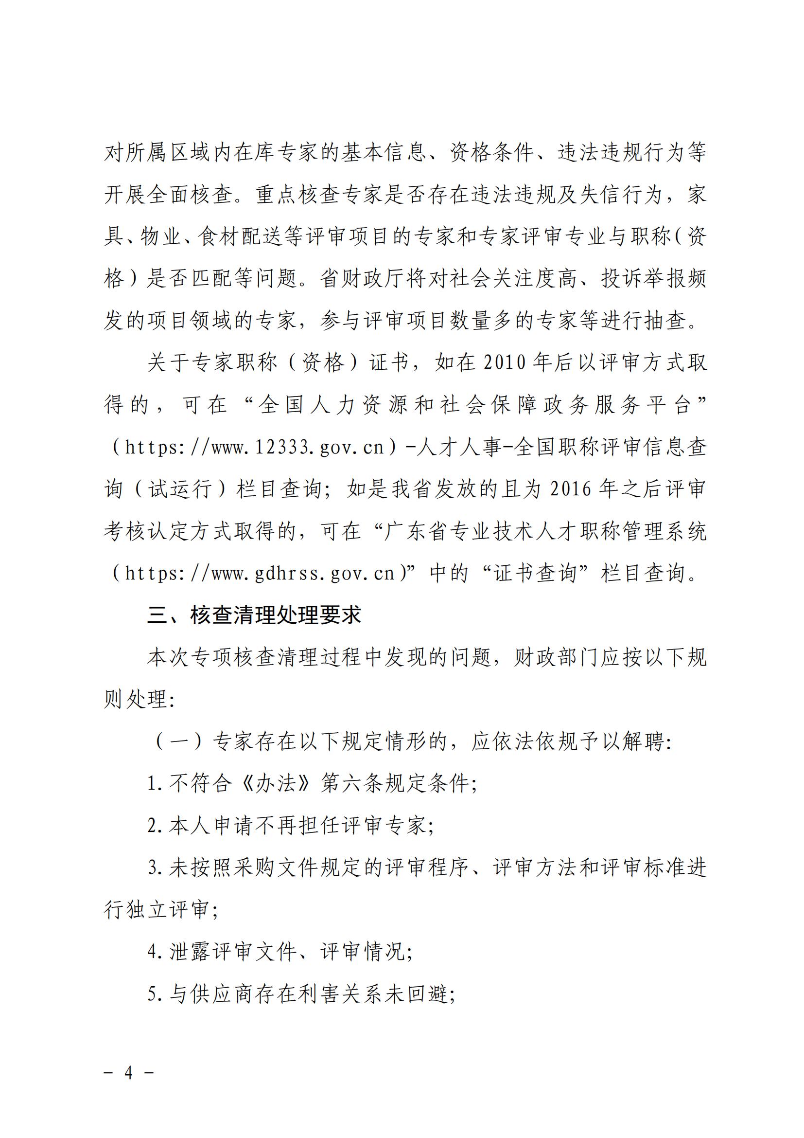 廣東省財政廳關于開展政府采購評審專家專項核查清理工作的通知